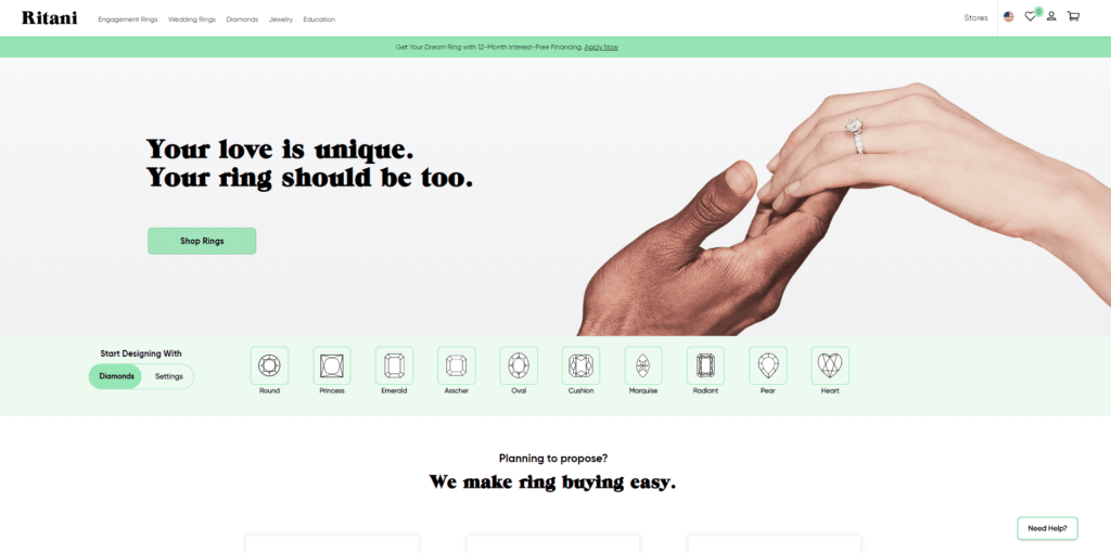 Ritani’s standout feature is their “clicks and bricks” model.