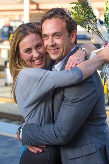 As always, The Heart Bandits are here to provide you with great wedding proposal ideas. Today we are going to show you how just by thinking back on important conversations that you have had with your girlfriend, you can come with a romantic proposal. During a conversation that Bill and Alison once had about Bill proposing, Alison said “I feel like I am at a platform………waiting for a train that will never come”. As soon as Bill heard that statement, he knew he wanted to use it to create his proposal idea. We got a vision in our head right away that Bill should propose at Union Station in Los Angeles. Bill also let us know that he had a lot of actor friends that he wanted to use in the proposal. The Proposal Planners at The Heart Bandits created an awesome scavenger hunt throughout Union Station that would eventually lead Alison to the platform where Bill would propose. There was a “jazz musician”, a “shoe shine boy”, and a “lone traveler”. Check out this lovely proposal and come up with your own creative idea for how to propose. We made sure that everything was timed perfectly so that as soon as Alison received the last clue she headed up to the train platform. As she got there, this time the train did arrive and Bill stepped out in a suit with the ring in hand ready to spend the rest of his life with Alison. It was a beautiful moment that captured the significance of their relationship and their future together.