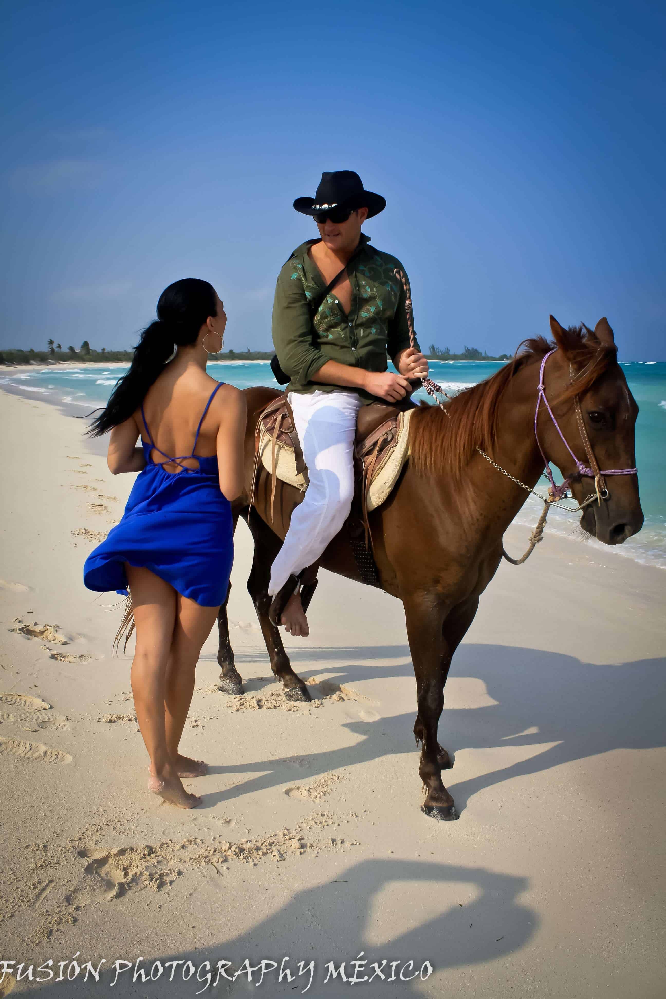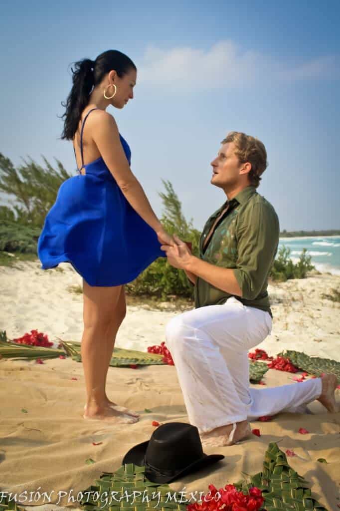 Proposing on the beach is a great marriage proposal idea. Add the white sandy beaches of Mexico and a childhood fairytale and you have perfection. When Michael called us and told us his proposal inspiration, our hearts melted. His girlfriend Liz was told a childhood fairytale growing up. Her grandma told her that one day a blonde-haired blue-eyed cowboy would come sweep her away into the sunset. Mike wanted to recreate that story for her when he proposed. Luckily he fit the bill and actually was blonde-haired blue-eyed so that part was easy. The hard part was that no beaches in Mexico allowed horses to ride there. But no challenge is too big for the Proposal Planners at The Heart Bandits.
