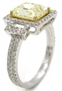 Hello, First – I think your site is great. Very good information and non of the marketing ploys. Keep up the good work. On to the situation. My girlfriend is leaning towards a yellow diamond as the primary stone surrounded by white diamonds, similar to an antique style. She has mentioned that “fancy” diamonds are not necessary but still would like some color – possibly in the X,Y,Z category. So I have two questions / dilemmas. Fist, are there any downsides at doing a two tone setup such as this? I have not seen many two tone engagement rings out there and am partially worried that it may come back to haunt us. I know this is some what a personal opinion but I value your expertise. Second, if going in that direction I have not found many retailers that carry non-fancy colored stones. Do you have any recommendations on where / who to look for these types of stones.