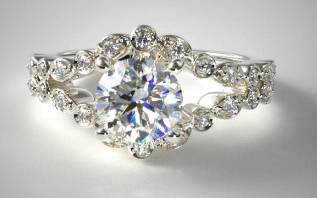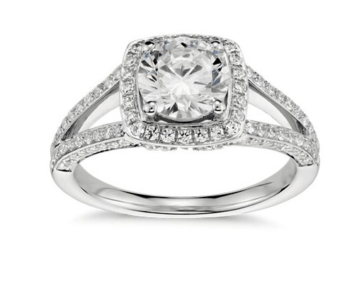 Split shank settings add character to an engagement ring with two slender shanks stemming from the center stone. From designs like this split shank halo from Blue Nile to this marquise split shank ring from James Allen, the beauty of this setting is endless.