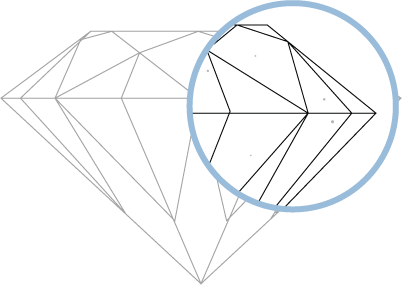 | Round Cut Diamonds | The facet pattern of the round brilliant cut makes it excellent at making inclusions less visible. Choose a clarity grade of VS2 or SI1 for a round brilliant cut diamond of under 1 carat (sometimes even SI2 doesn’t have visible inclusions). For Round Cut diamonds 1 carat or over, a VS1 or VS2 will give you an eye-clean stone. The larger the diamond (carat weight can be a factor), the easier it is to see inclusions. |