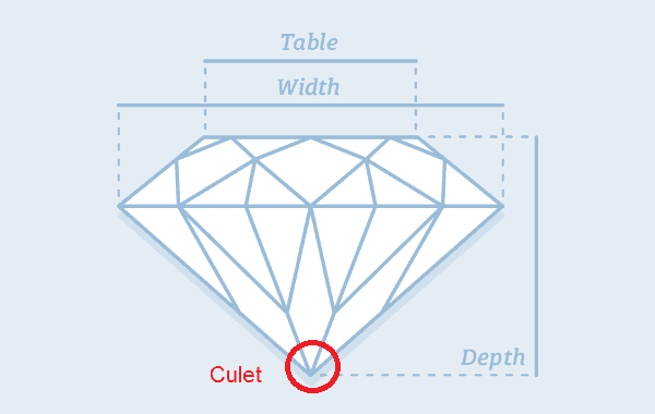 “Larger culets can have a negative effect on the diamond’s face-up appearance, specifically affecting its pattern, and lowering its cut grade.” Gemological Institute of America (GIA)