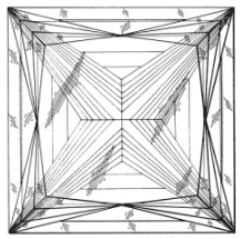 When a diamond has two chevron patterns, the diamond reflects bolder flashes of white and colored light. When a diamond has four chevron patterns, the diamond has more scintillation — resulting in smaller flashes of white and colored light that can be seen when the diamond moves.
