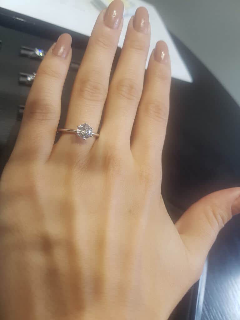 The first diamond was an IGI certified 1.20ct F SI. They had it mounted in an 18kt white gold solitaire setting and the total cost was £7,099.