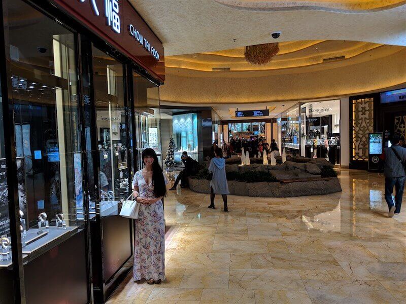As is to be expected at a high end casino, the Chow Tai Fook in the shopping area of the Sands Cotai Resort was beautiful. It was elegant and classy, with a more calming atmosphere than the bustling stores we saw in Hong Kong.