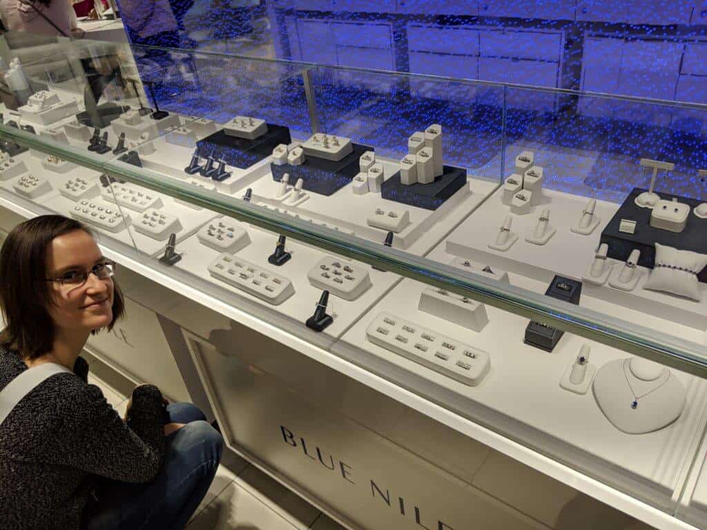 To put it in perspective, we found comparable rings online for 30-40% less than the prices we saw in Portland. For example, a beautiful engagement ring like this $4,620 round cut halo engagement ring from James Allen would probably cost about $6,200 at a Portland jewelry store.