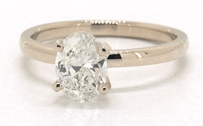 In general, the trick is to make sure that the diamond you choose looks colorless in comparison to the setting. With a metal like white gold or platinum, a diamond with a faint tint (for example, a J or K grade diamond) will usually look slightly yellow, even to the naked eye.