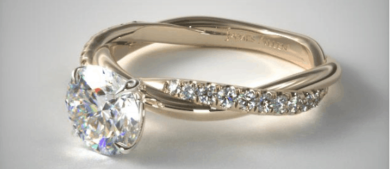 With a mixed metal ring, you can stand out from the crowd and design something specific to you. If you prefer a modern design or a non-standard look, a mixed metal engagement ring might be the right choice. Platinum or white gold paired with yellow/rose gold is a stunning combination that will get a lot of attention. Two-tone rings also offer versatility and pair well with other jewelry. For example, if you have a rose gold and white gold ring like this example from Blue Nile, it coordinates well with other rose gold and white gold pieces.