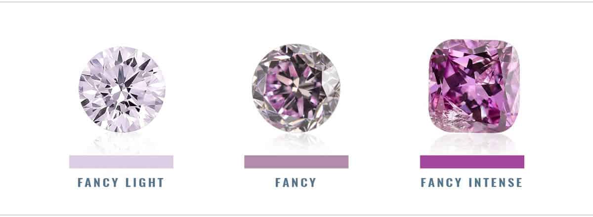 Purple diamonds appear in several color intensity levels and follow the GIA grading scale for Fancy Diamonds. As the richness and saturation of a purple diamond increases so does its color grade.