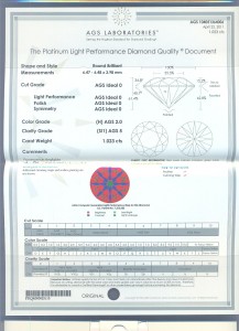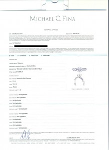 Tiffany & Co uses an in-house certificate, but it seems to me that they take it much more seriously. Their grading is exact – no split grades. And their grading was very conservative – right on target in my opinion.