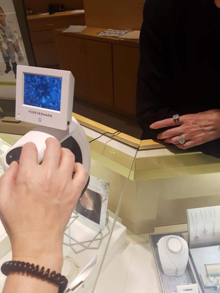 The only way to see the inscription is through a microscope. Forevermark provides the retailers with a special microscope that displays the inscription on a screen. That is, if they can get it to work.